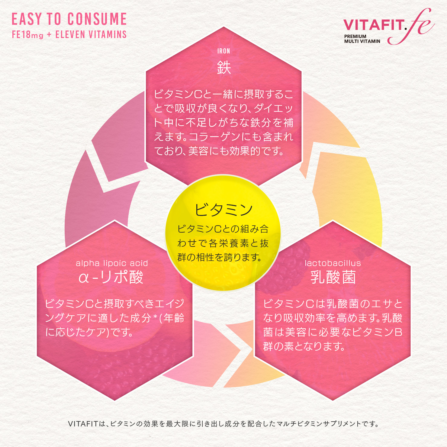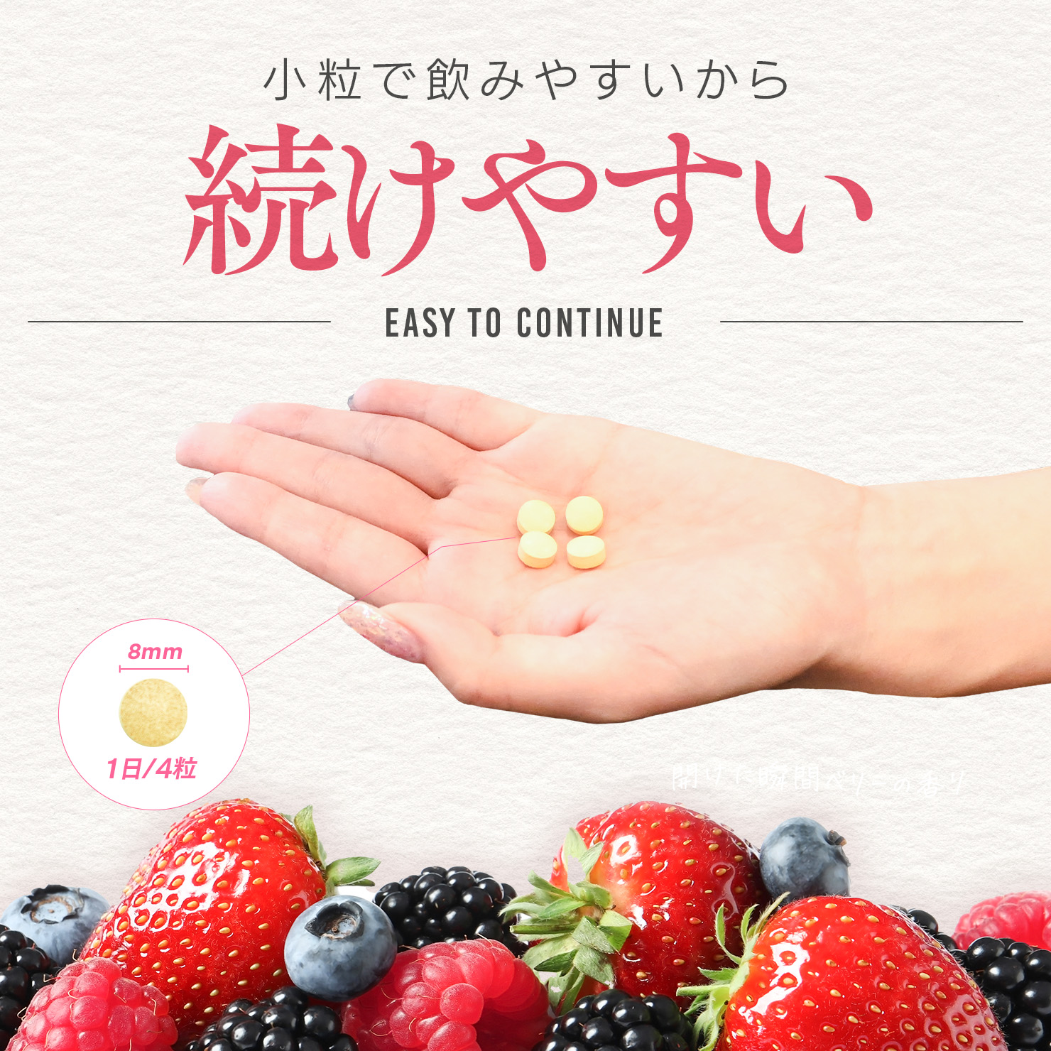 | 原材料名 | 還元麦芽糖(国内製造)、有胞子性乳酸菌末、黒胡椒抽出物、果汁混合末(オレンジ・もも・りんご・キウイフルーツを含む)、L-カルニチン酒石酸塩、チオクト酸(α-リポ酸)、バラ花びら抽出物、ブドウ種子抽出物、野菜混合末/クエン酸鉄Na、V.C、セルロース、V.E、二酸化ケイ素、ナイアシン、ステアリン酸Ca、パントテン酸Ca、V.B6、HPC、V.B1、V.B2、シェラック、葉酸、香料、ビオチン、甘味料(スクラロース)、V.D、V.B12 |