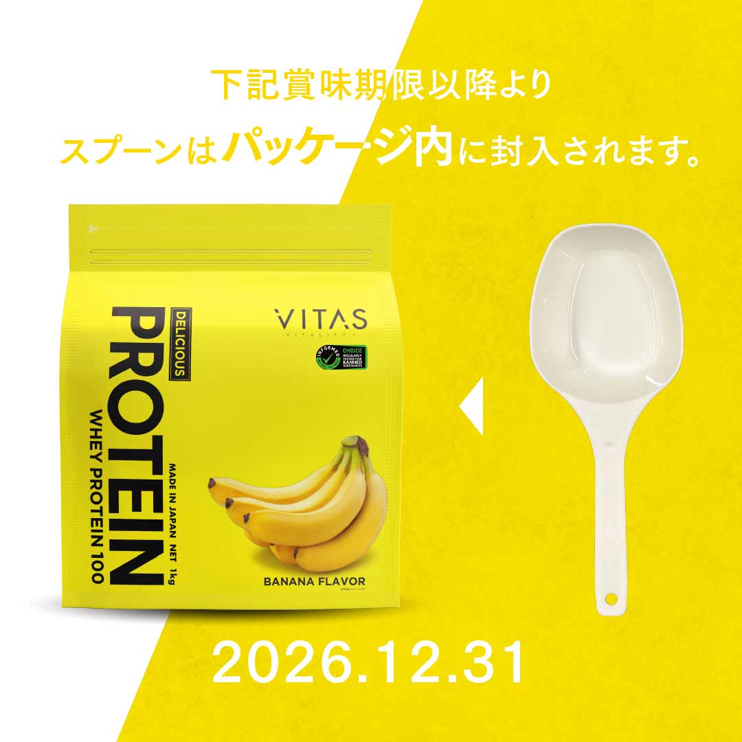 | 原材料名 | 乳清たんぱく、ポリデキストロース(水溶性食物繊維)、バナナ末、 食塩/増粘多糖類、リン酸Ca、乳化剤(大豆由来)、甘味料(アス パルテーム・L-フェニルアラニン化合物、スクラロース、アセスル ファムK)、香料、V.C、クチナシ色素、V.E、ナイアシン、パントテン 酸Ca、V.B₁、V.A、V.B₆、V.B₂、葉酸、V.D、V.B₁₂ |